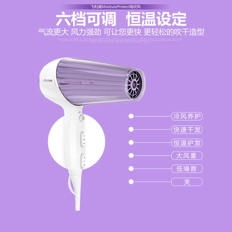 飞利浦(PHILIPS) 电吹风机 家用大功率六档调节恒温护发速干冷热风 1800W大功率